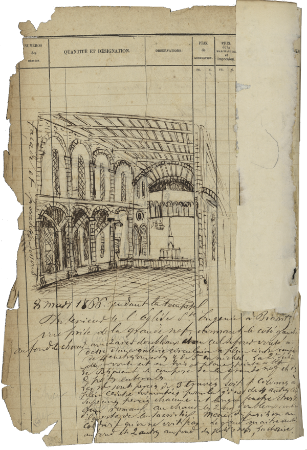 Vue de l’intérieur de l’église Sainte Eugénie à Biarritz, le 8 mars 1866 (pendant la tempête)