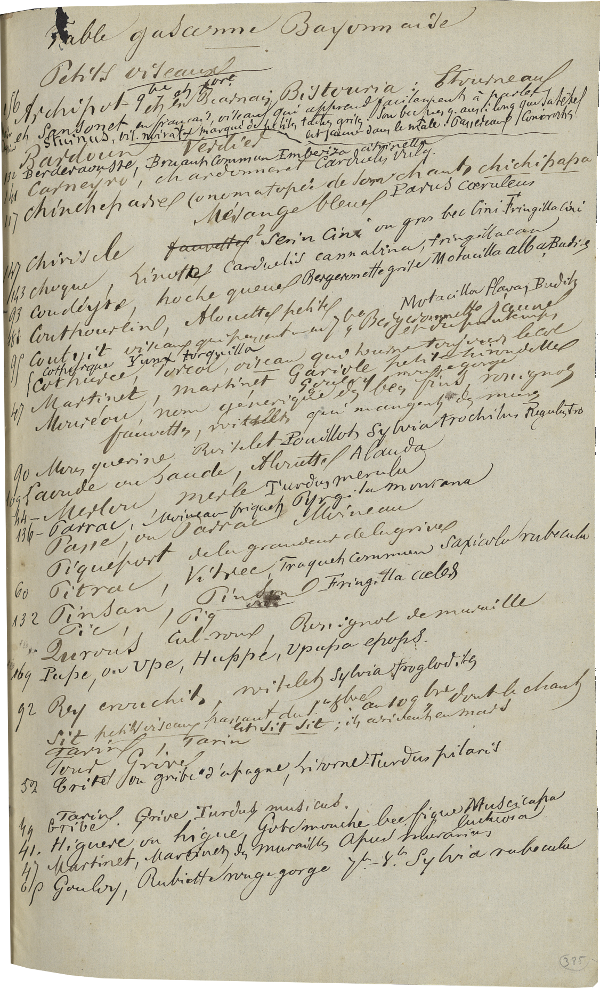 De manière étonnante, au milieu de ce carnet essentiellement consacré à la zoologie, Pierre Thomas Ducourau dresse une très longue liste d’espèces végétales figurant dans la Botanique d’Edouard Spach, botaniste du Muséum National d’Histoire Naturelle de Paris.
