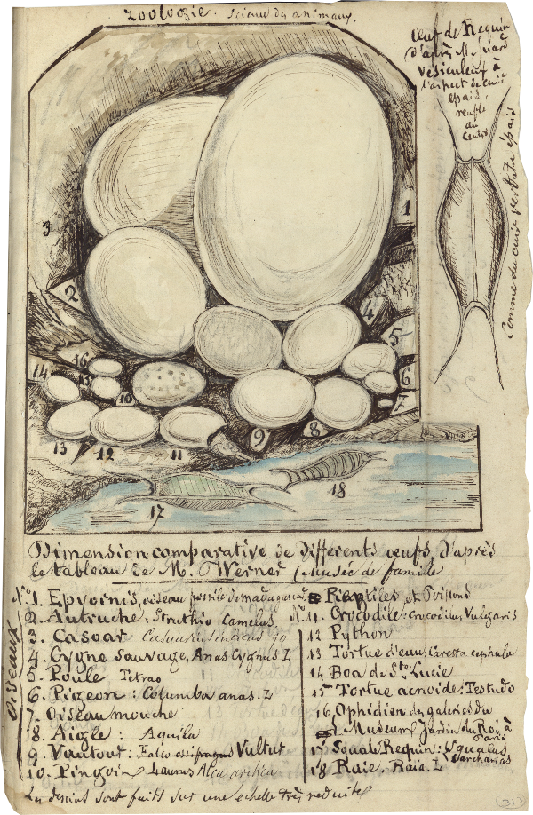 Dimension comparative de différents œufs d’après le tableau de M. Werner (Musée des familles)