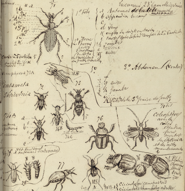 Dans la brochure sur les insectes, l’auteur s’est attelé à un travail d’étude anatomique (systèmes « tégumentaires », nerveux et digestif) pour quelques espèces. L’a-t-il réellement fait ou, comme d’autres fois, a-t-il puisé des dessins dans la littérature ? Notons en tout cas une certaine diversité des approches de cette classe (anatomique, écologique, mode de vie et de reproduction…)