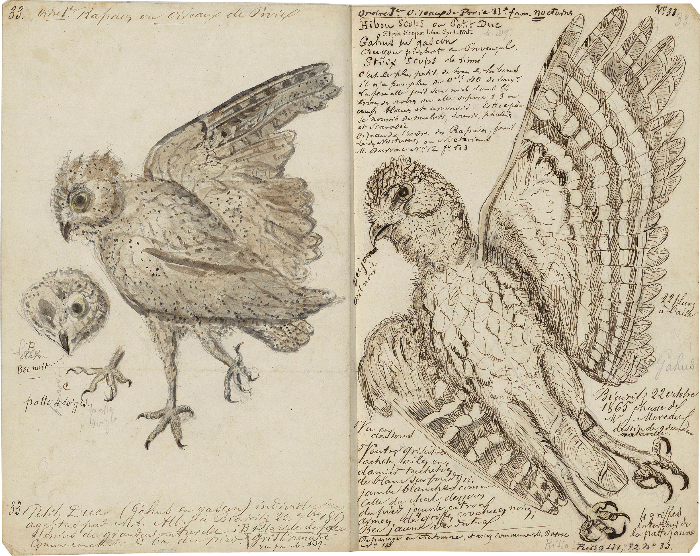 Petit Duc (Gahus en gascon) individu jeune âge, tué par M. [?] à Biarritz 22 Nbre 1867