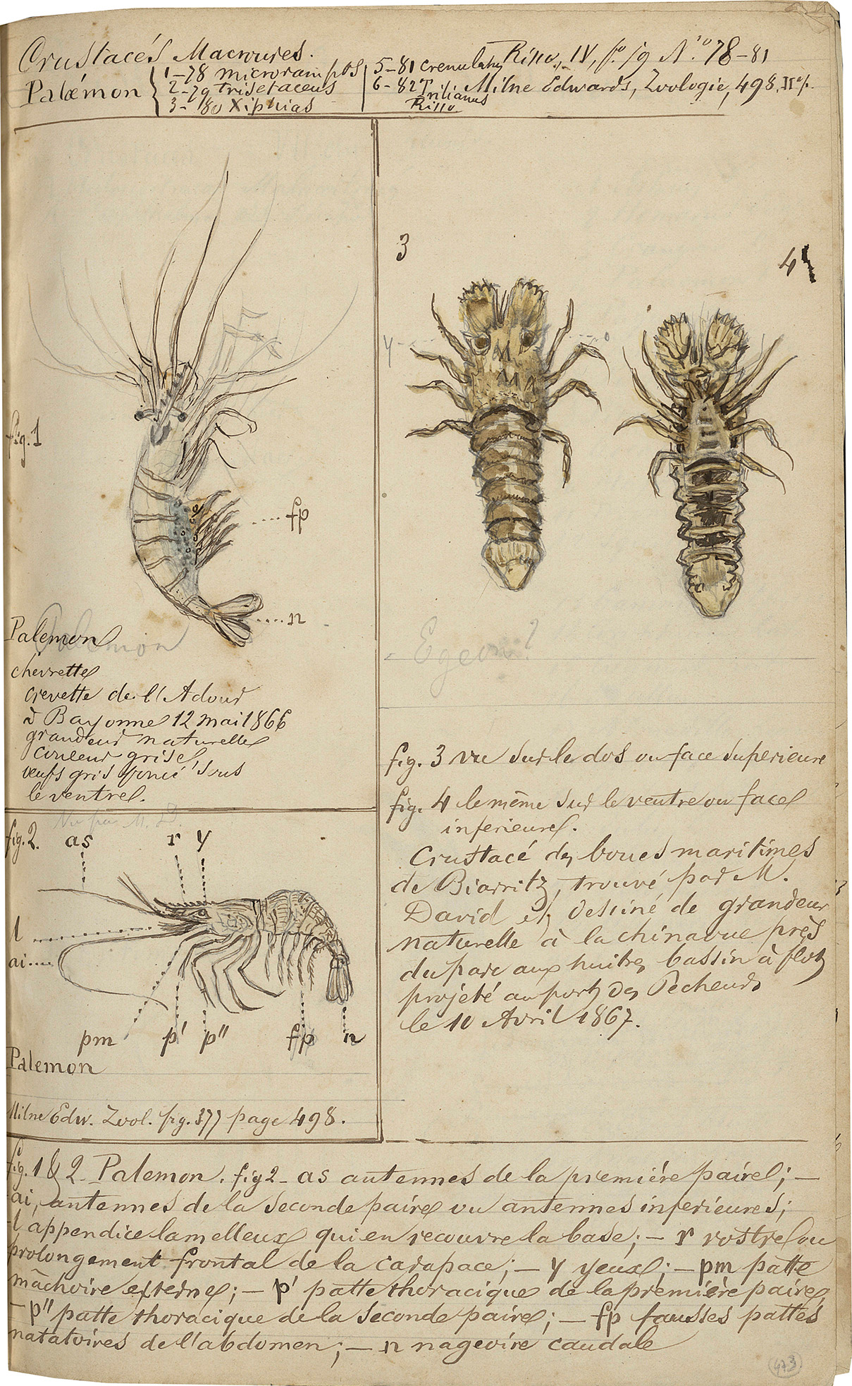 Crustacé des boues maritimes de Biarritz trouvé par M. David et dessiné de grandeure naturelle à la chinavue près du parc aux huîtres bassin à flots projeté au port des pêcheurs le 10 Avril 1867