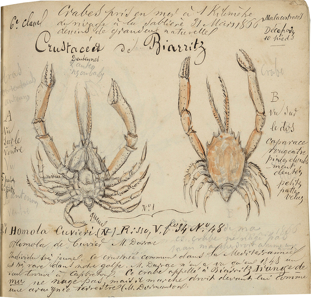 Individu très jeune. Le crustacé commun dans la méditerrannée est très rare dans notre golfe. M. darrac n’en a vu qu’en 1848 un seul trouvé à Capbreton.