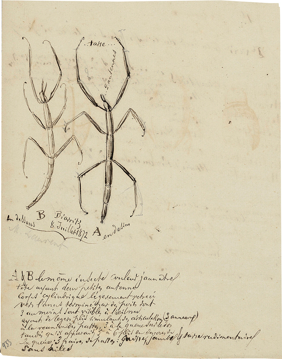Ayant de léger plis simulant des articulations (3 anneaux) à la réunion des pattes, 3 à la queue et sur le dos tandis qu’il apparait 5 à 6 plis en dessous de la queue ; 3 paires de pattes : gaine, jambe et ?? rudimentaires
