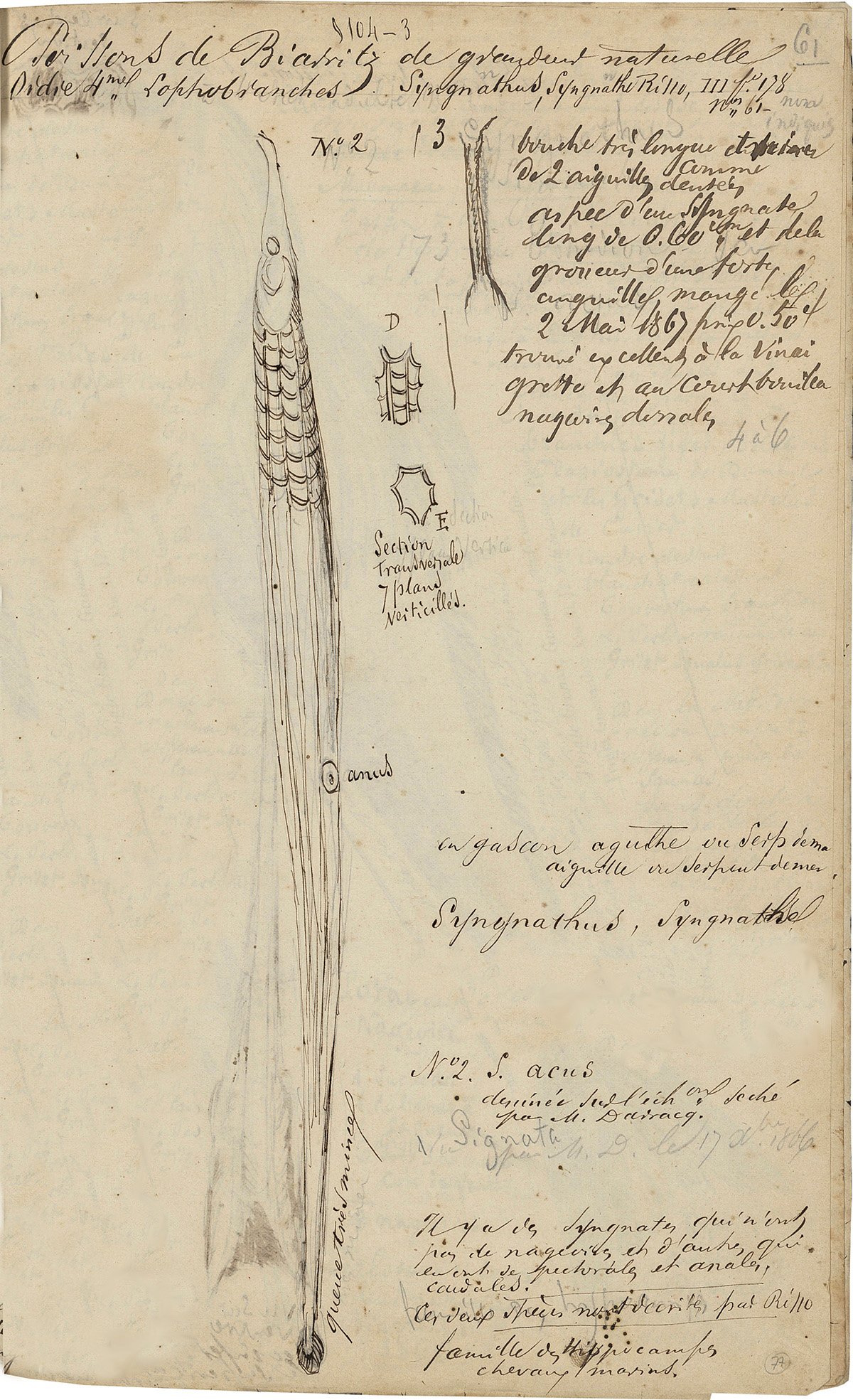 Ordre 4me Lophobranches Syngnathus, Syngnante Risso III p178 n°61 (non indiqués)