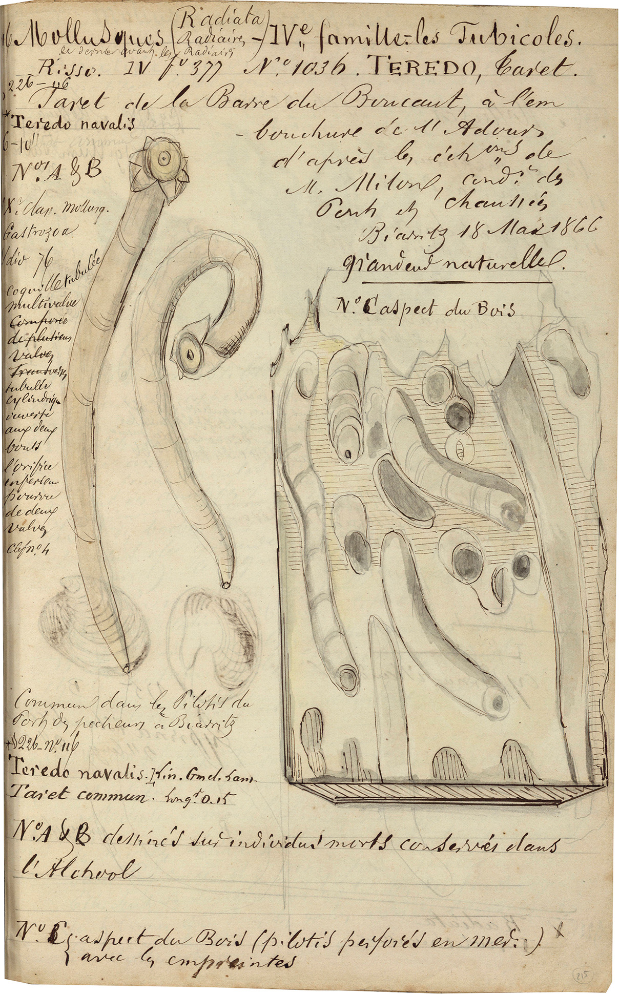 Taret de la Barre du Boucaut, à l’embouchure de l’Adour d’après les échantillons de M. Milon, commandant des Pints et chaussées